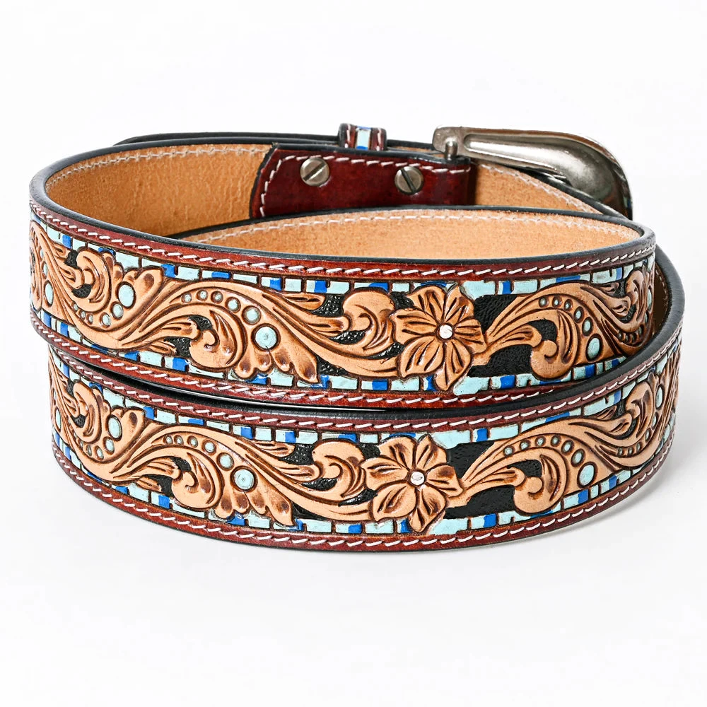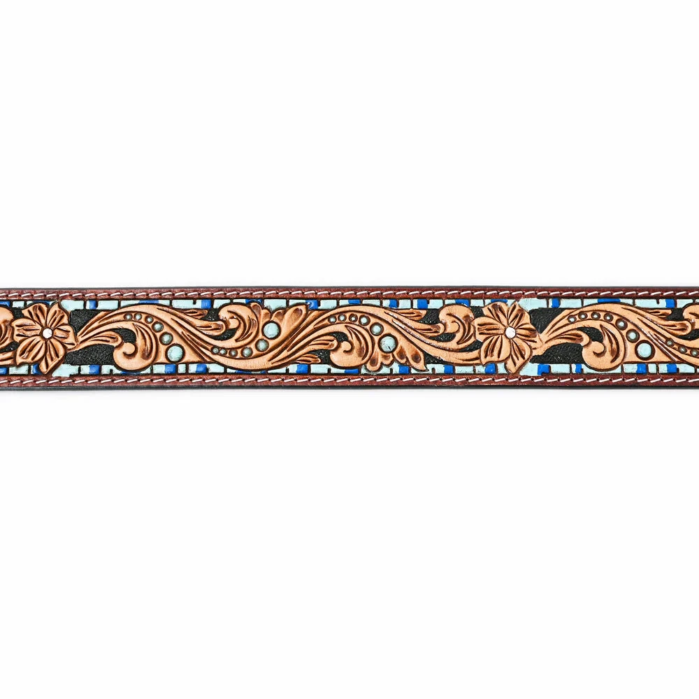 Look at this beautiful American Darling Belt! It is a floral tooled leather with turquoise and blue accents!