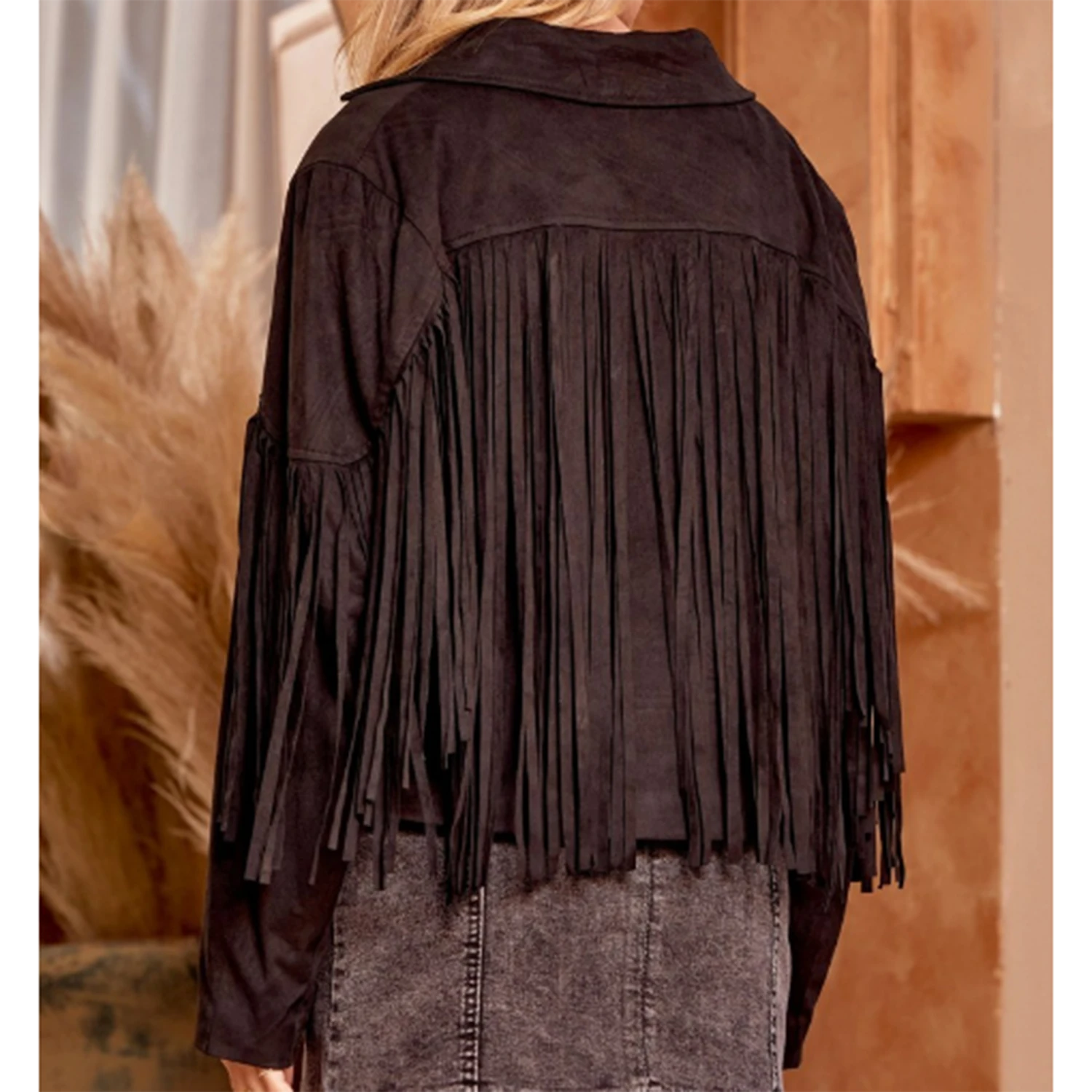 Part of our NFR Collection, this black suede fringe jacket is a must for Vegas or a night out at a great concert!! Have a little fun!!Â