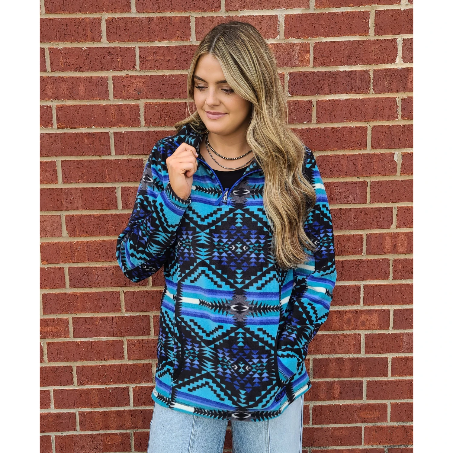A must have for the season. This Turquoise Aztec Pullover from Powder River checks all the boxes; cute comfy, and warm!