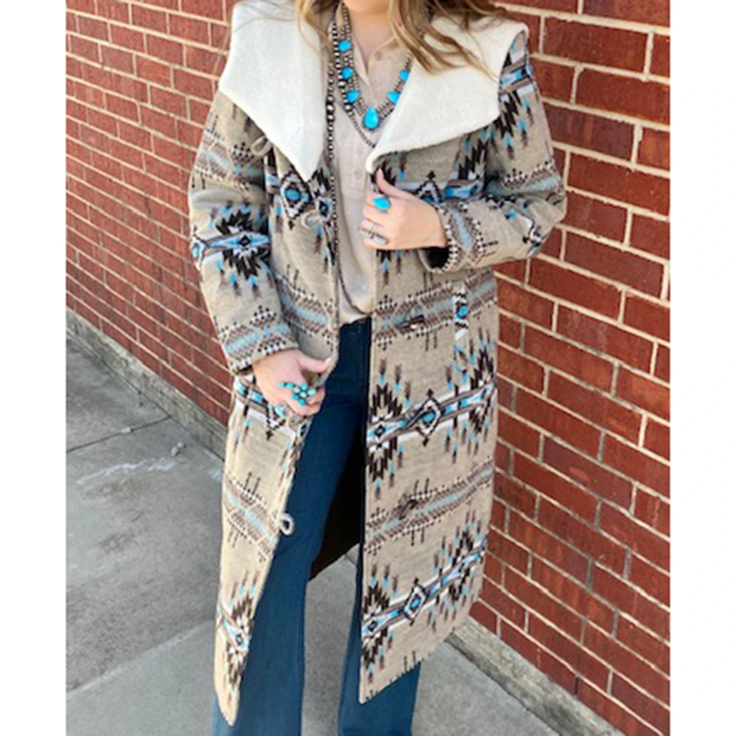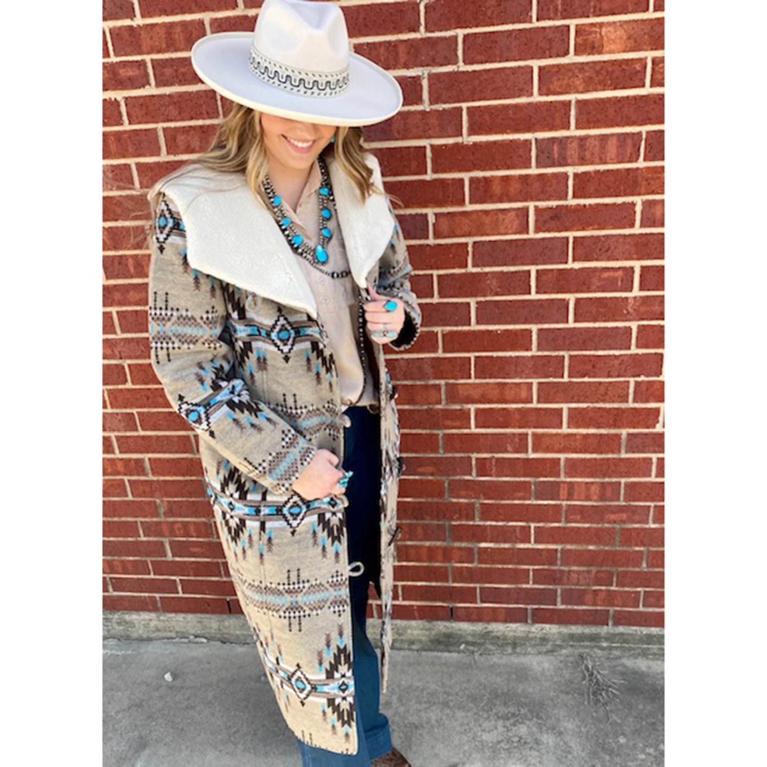 The Coat of the Year award, goes to this stunning tan and teal southwest inspired wool coat from Powder River. When the temps are freezing outside yet you still want to be stylish, this is the coat for you!!Â